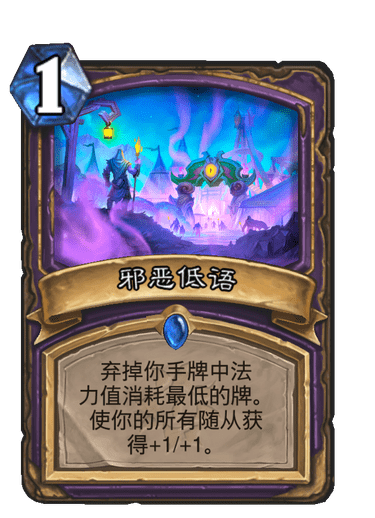炉石传说新版本“疯狂的暗月马戏团”终于上线了,在这次的新版本卡套中有很多新的卡组,其中里面就有邪恶低语这个卡牌,那么炉石传说疯狂的暗月马戏团新卡中的邪恶低语怎么样呢?今天小编就给大家带来炉石传说疯狂的暗月马戏团邪恶低语卡牌介绍,大家一起来了解一下吧!