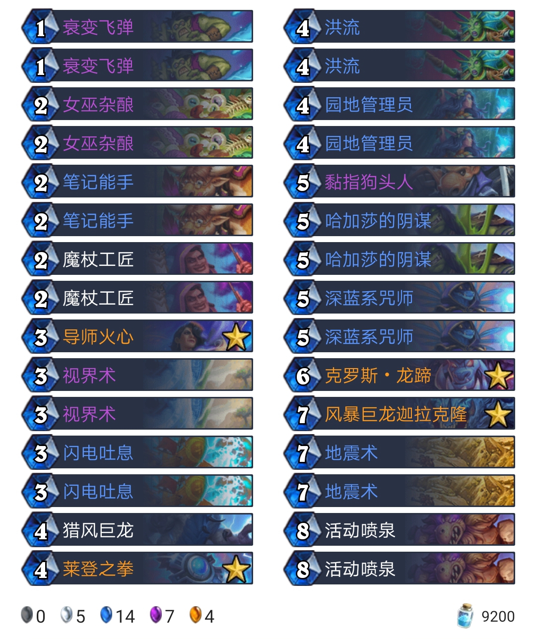 用这套牌组打来到传说故事144名,牌组创作者已经最后的冲刺前50。全套牌组的抗快攻工作能力十分强,可带的解牌基础都携带了,本人觉得能够除掉一些解牌换掉一些品质牌,例如最新版本的双岗位橙卡,莱斯霜语、演讲人吉德拉
