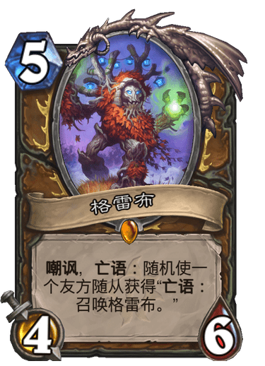 嘲讽,亡语:随机使一个友方随从获得“亡语:召唤格雷布”。