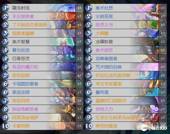 宇宙法的赢点与之前基本一致,乘龙魔法师接王者荣耀露娜的袋子星空后能够相互配合多个牌组过牌加超进行,亦或者根据数次冰系法力掌控获得获胜。宇宙法这套卡组的超进行工作能力一流,薄厚也充足,现阶段自然环境中唯一大劣pk是猎手,假如自然环境中猎手总数很少,那这套卡组的冲分工作能力是很强的。