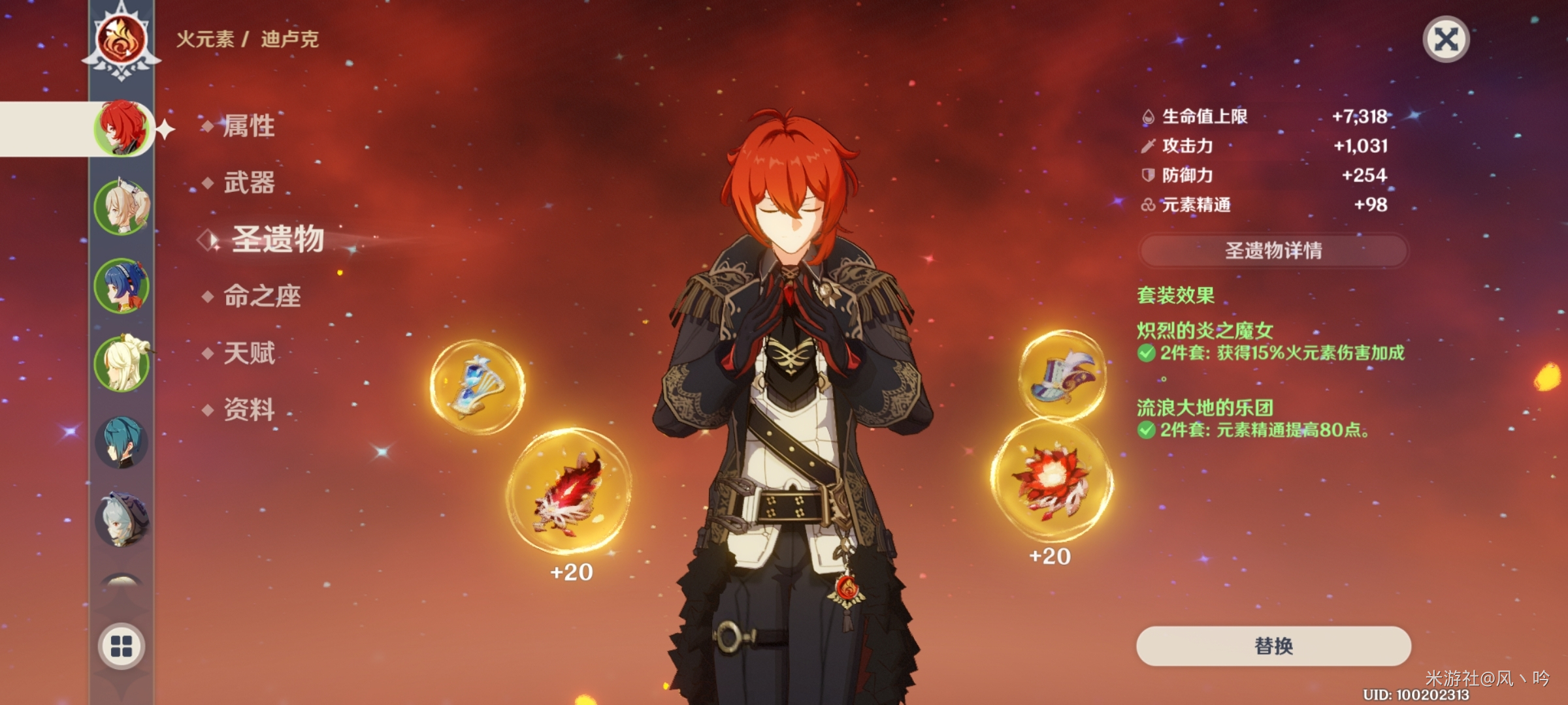 (说明一下,如果有暴击伤害,暴击率,攻击,攻击百分比加成其中有2样的副属性就已经算好的了,不用追求极致,暴击率适当加点就行,因为迪卢克角色突破也是要加暴击率的。)
