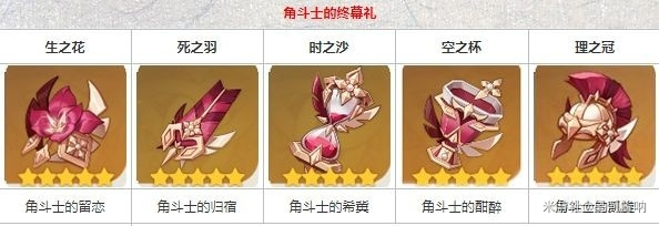 2、中后期只推荐角斗士套,因为雷泽大部分伤害还要普攻和重击打出的,技能算作如虎添翼,而且角斗士是中期比较好获取的套装(如下图)。空之杯位置建议选择攻击力加成/物理伤害加成(后期建议选择物理伤害加成,攻击力加成会被稀释许多),时之沙位置建议选择攻击力加成,理之冠位置建议选择暴击(选择螭骨剑就选择暴击伤害)。随机副词条建议堆攻击力、暴击、爆伤,少量元素充能加快技能释放,少量生命值加成保证血线健康。