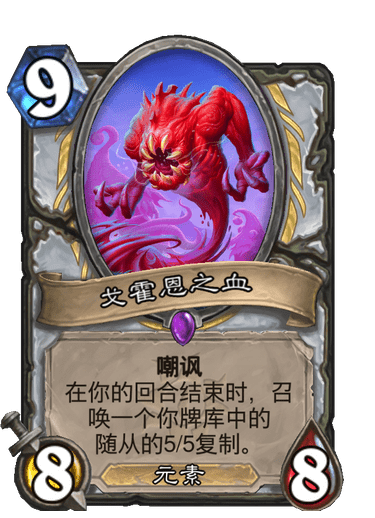 元素,嘲讽 在你的回合结束时,召唤一个你牌库中的随从的5/5复制。