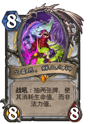 战吼:抽两张牌,使其消耗生命值,而非法力值。