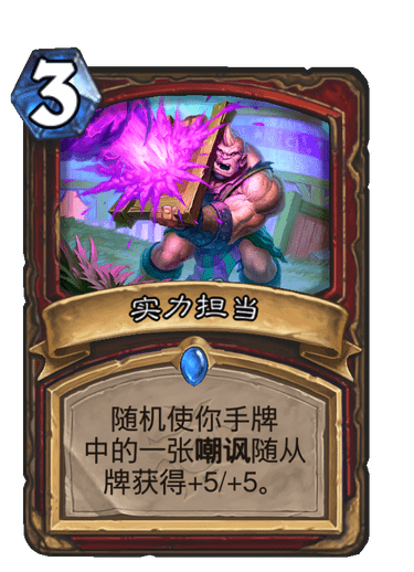 炉石传说新版本“疯狂的暗月马戏团”终于上线了,在这次的新版本卡套中有很多新的卡组,其中里面就有实力担当这个卡牌,那么炉石传说疯狂的暗月马戏团新卡中的实力担当怎么样呢?今天小编就给大家带来炉石传说疯狂的暗月马戏团实力担当卡牌介绍,大家一起来了解一下吧!