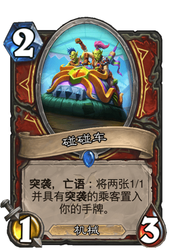 炉石传说新版本“疯狂的暗月马戏团”终于上线了,在这次的新版本卡套中有很多新的卡组,其中里面就有碰碰车这个卡牌,那么炉石传说疯狂的暗月马戏团新卡中的碰碰车怎么样呢?今天小编就给大家带来炉石传说疯狂的暗月马戏团碰碰车卡牌介绍,大家一起来了解一下吧!