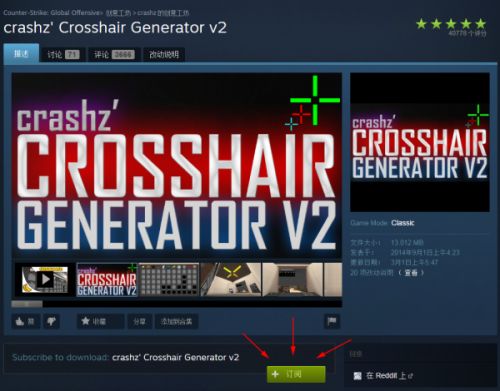 打开 准星地图地址:点击进入或者直接游戏中点开创意工坊里搜索“Crosshair Generator”即可