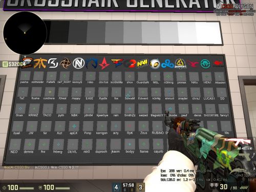打开准星地图地址:点击进入或者直接游戏中点开创意工坊里搜索“Crosshair Generator”。几乎所有一线职业选手的准星全部汇集在张墙中,只需对着准心开枪 就可以一键更换成某位职业选手的职业。