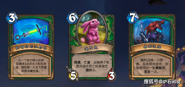 猎人的3张宝藏卡牌分别对应了猎人野兽铺场、亡语站场和奥秘猎打法,强度算是非常不错了。