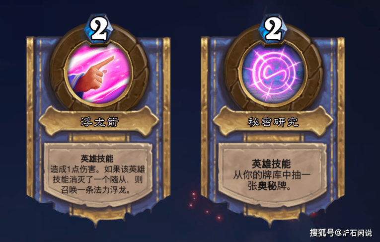 法师的英雄技能是浮龙箭和秘密研究。后者属于定向抽牌的英雄技能,直指奥秘法的打法,而前者是目前法师通用的英雄技能。为什么小编认为法师的英雄技能是10大职业之最强?是因为其补刀之后能够召唤一个法力浮龙,是法师DK的简化版。然而,法力浮龙和DK所召唤的水人,实际上效果也不会差距太大。