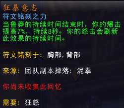 这是目前狂暴战在单体战斗场景下极具竞争力的橙装,效果并不难以理解,“破城”的效果是“让你对目标造成的伤害提升15%”。