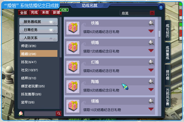 成就“水晶婚”达成条件:领取15次结婚纪念日礼物。
