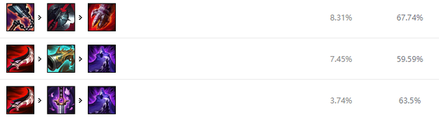 征服者红凯主要是持续作战能力强,神话装备选择渴血战斧,增加伤害,生命值,技能急速和生命恢复效果,主动还能进行斩击造成伤害并恢复生命值,再加上技能和被动的效果恢复能力超强,黑切增加伤害和一定的坦度,提升凯隐的持续作战能力,血手被动触发后提供护盾来吸收伤害。如果进化为蓝凯就以暮刃为主,选择破甲装备后续可补防御。