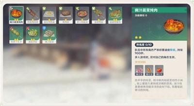 4、稠汁蔬菜炖肉食谱获得之后,玩家需要这些食材:肉2、胡萝卜2、西红柿1,是一个二星的食物