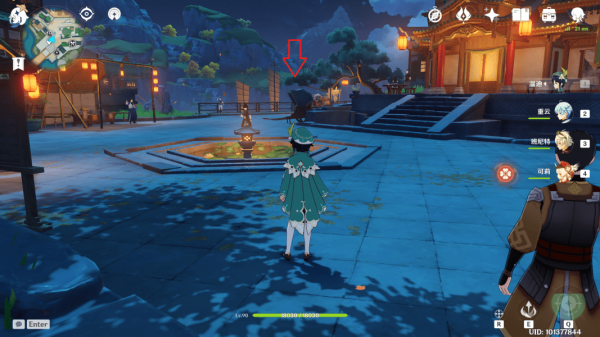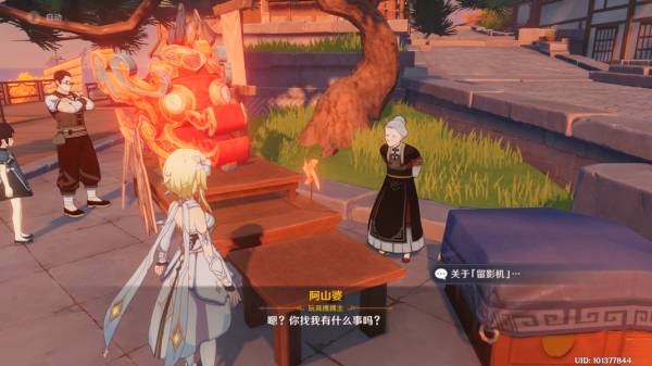 step3 传送到璃月城靠近合成台的传送点,来到提示区域,根据照片提示找到第二个人阿山婆,交付照片。