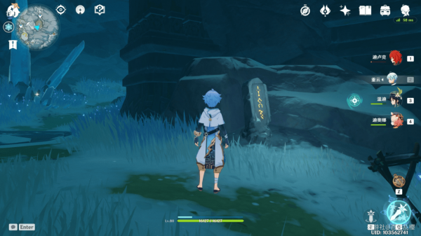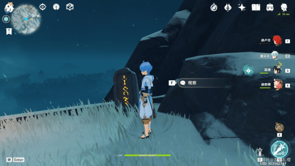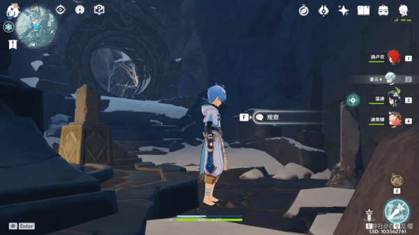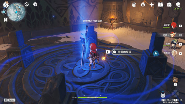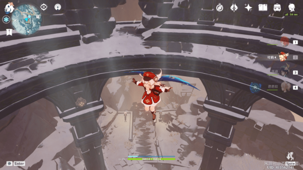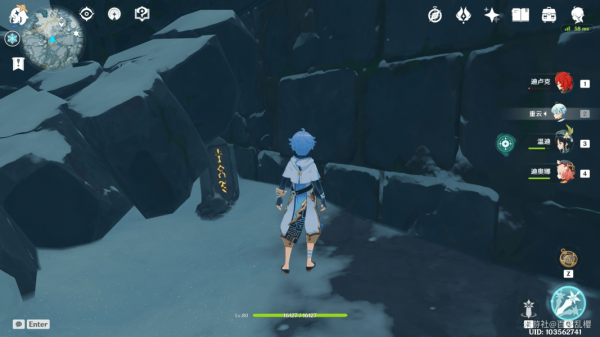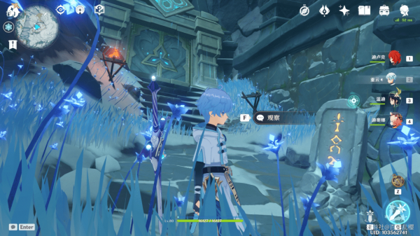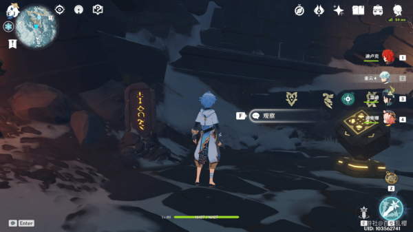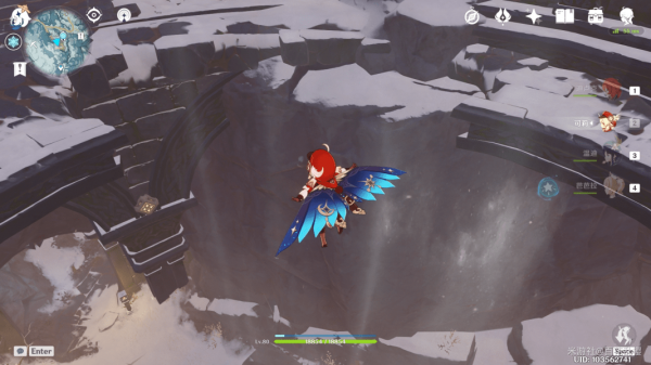 上图说的哪个机关就是这个图,这个机关被冰埋着。打开后开启风场,如下图的风场。一共有三个小方块的机关需要激活,在空中靠近就可以激活。激活完毕在集齐8个墓碑就可以开门了。