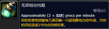 装备效果: 你的伤害性技能有几率召唤一只起泡脓包为你作战,对你的目标造成1030点自然伤害。