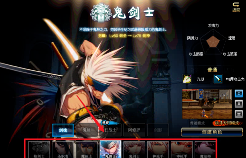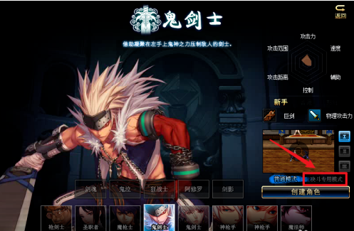 DNF创建PK专用角色步骤四:切换的决斗专用模式角色创建界面后,选择自己需要的职业角色。完成角色职业选择后,点击右侧的“创建角色”按钮。