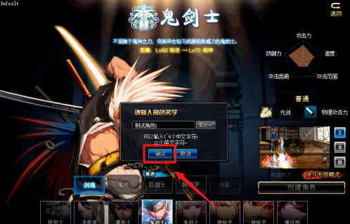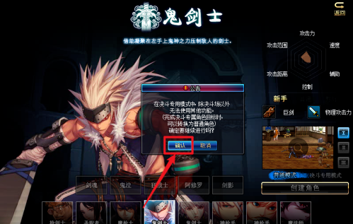 DNF创建PK专用角色步骤三:点击“决斗专用模式”选项后,点击“确定”进入创建界面。