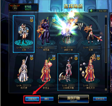 DNF创建PK专用角色步骤一:进入游戏角色选择界面后,点击界面左下角的“创建角色”按钮。
