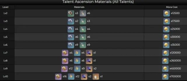 胡桃天赋材料一览: