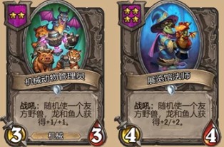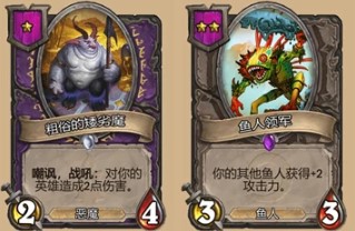 鱼人方面推荐选择鱼人领军,因为领军合成金卡后是带光环的6/6,可以BUFF融合怪,比老瞎眼要好一点。