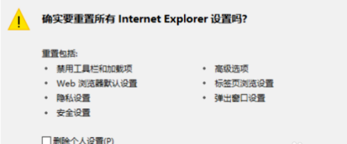 在弹出的对话框中,勾选【删除个人设置】,点击【重置】