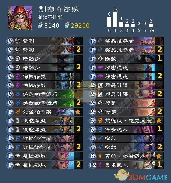 炉石传说2021剽窃奇迹贼狂野卡组玩法攻略是:通过养任务达人或者大饭甚至是奥术巨人进行铺场斩杀,在达人大饭都被解掉后可以通过窃贼找法师直伤斩杀,。对大哥牧是大优势,可以全力找钉棍或者窃贼找衰变飞弹。对奇数骑是大劣势,只能靠剽窃组件找控场牌苟住,注意防古神在上。