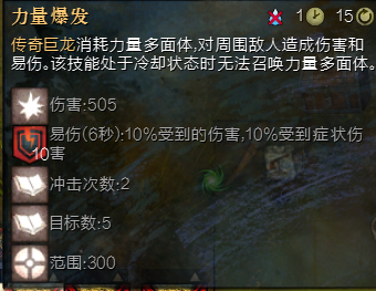力量多面体主动技能范围是300,并造成20层易伤。而单手剑平A范围是130。