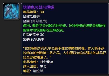 《魔兽世界》铁箍鬼灵战马缰绳怎么获得
