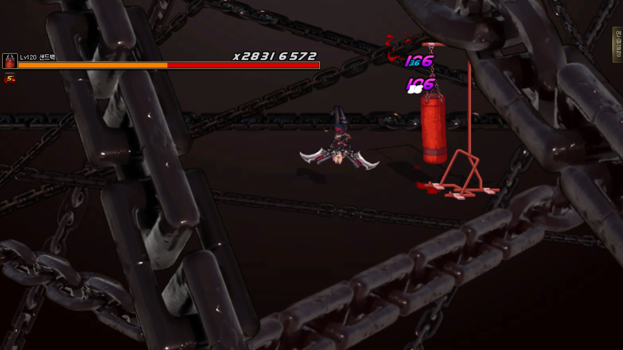 而在学习被动后,这一个技能变成了一个2段攻击效果,第一段时丢出刃链攻击,第二段时枪械射击攻击,而两次攻击的范围不同,子弹射击的X轴距离比刃链的范围更大,而射击攻击力则是由原来旋转攻击的五次伤害转换过来的。这一个技能优化对女漫游来说还不错,技能更显得干净利落,更符合女漫游的特质。