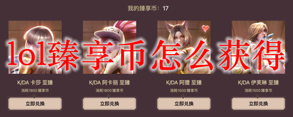 LOL臻享币获得方法是:打开1个黄金宝箱赠送5臻享币,打开1个钻石宝箱赠送12臻享币。打开10个赠送的1个皮肤或英雄时不赠送臻享币。消耗臻享币可以兑换指定道具。