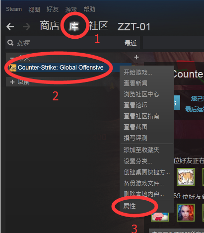 具体原因未知,可能是玩家自己添加的国服启动项后忘记,但有几例情况是CSGO玩家也玩国服DOTA2,所以也有可能是DOTA2更新导致。解决方法很简单,只要把CSGO的国服启动项去除即可。1、打开Steam客户端;2、进入Steam游戏库;3、找到CSGO,右键点击“属性”;