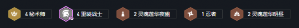 羁绊:4秘术师 4重装战士 2灵魂莲华夜幽 1忍者 2灵魂莲华明昼