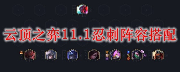 LOL云顶之弈11.1忍刺强势阵容搭配是:永恩、派克、男刀、慎、卡特、凯南、阿卡丽、劫,装备搭配是:阿卡丽的火炮、蓝霸符、无尽,凯南的鸟盾、刺转、复活。