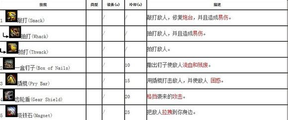 1技能没什么说的,2技能如技能效果一样,一个是打爆发,再一个是逃跑。3技能不多说是工程都懂,像上面的3一样,为什么3技能都是困惑?4不说,5破盾先手,抓逃跑击倒,可以说工具包5-3的连击,每个工程都会,而且,命中率100%。这里重点说下2技能,所有人都知道激战2的1技能是自动施法的,而且可以改,那么,把自动施法改成2的效果就是每切到工具包的时候,都会听到撒钉子,可以省省时间。