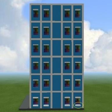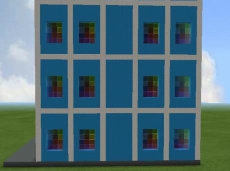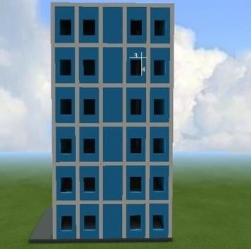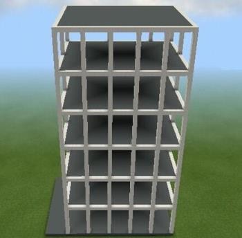 6.前面开凿掏空,每扇空窗面积为3×4格,每层地板向上空2格开始凿空窗。