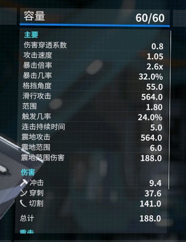 面板当面,32%的暴击2.6的爆伤,1.05丝滑手感,24%触发标准水平,范围……1.8就1.8吧,又不是不能用,主切割伤害,除了手短没有什么问题。紫卡倾向2星跟皇拐一样了,早些时候爪子倾向只有1的,现在2星可以洗出一些不错的2+1紫卡,推荐速爆、速范