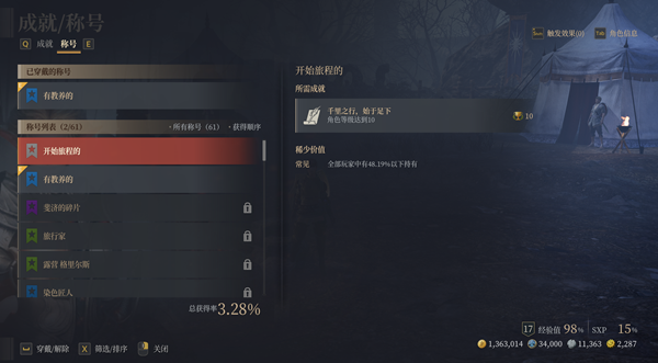 进入"菜单(Esc)>成就/称号>称号",查看获得的称号。