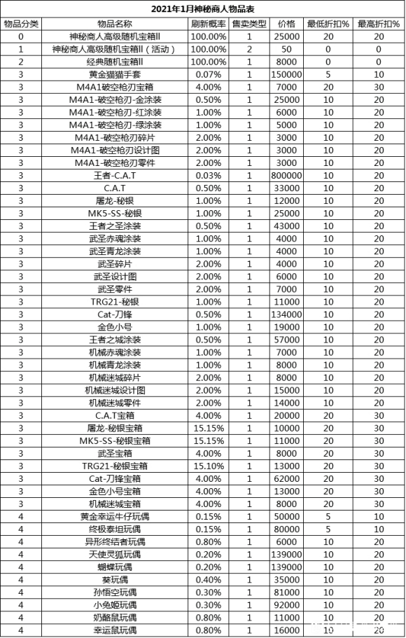 cf神秘商人再次上线,本次上线的还有黄金猫猫手套等超级稀有道具,不过刷新几率比较低,而且价格也高,那么CF神秘商人有什么?下面就给大家带来cf神秘商人物品大全2021。