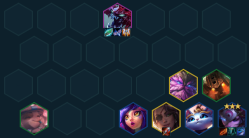 这个阵容的站位来自神超的实战站位,前排单挂一个科加斯,科加斯比较肉可以扛得住。神射手一定沉底站位,配合科加斯的控场能更好的拉扯输出,中间放奥恩、泰坦两张肉牌。