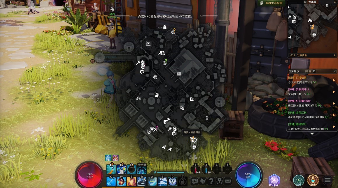 玩家也可以在左上的小地图下方点出NPC的下拉目录,找到“西奥-装备强化”点击后可直接导航寻路。