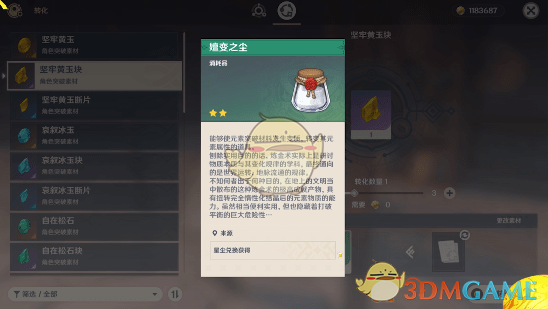海灯节活动期间,蒂玛乌斯在苦心钻研炼金术时又洞察了元素转化之力。通过“嬗变之尘”,旅行者可以在合成台把某种元素的角色突破材料转化为另一元素。对于拥有大量素材的旅行者,也可以选择使用“参量质变仪”对多余的素材进行质变。质变之后说不定有惊喜哦。