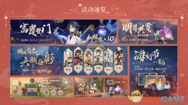海灯节基于“节庆热度”分为三个阶段:分别是“节庆方才始”、“众客云集来”、“万家霄灯光”。旅行者需要通过完成“海灯节轶事”中璃月居民的各色请求,提升“节庆热度”,并解锁下一阶段的剧情。