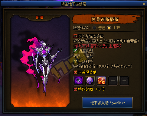 困难级别领主每次必定掉落1个,入场消耗30点疲劳值