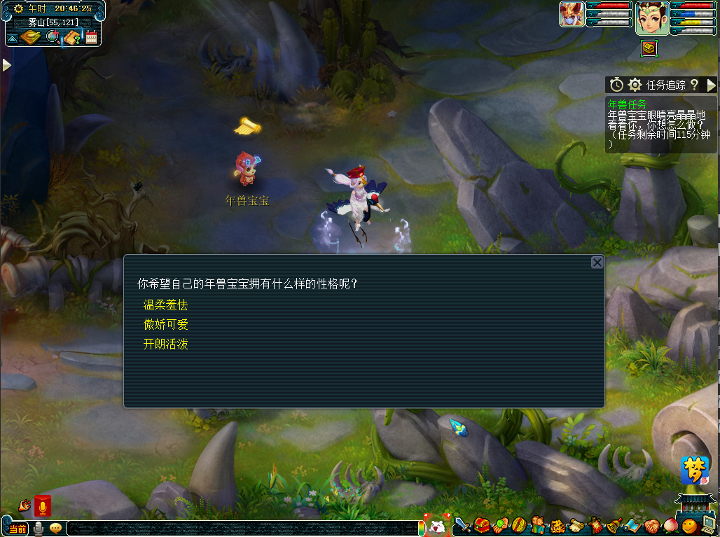 去年与少侠分别后,年兽宝宝变得更加古灵精怪啦!年兽宝宝有不同性格类型供侠士们选择,侠士们可在世界任务面板中接取更丰富的日常任务,还可在年兽面板中查看宝宝的各项信息。这个小家伙,在世界闲逛的时候(包括少侠不在线的状态),会遇到一系列的奇遇和冒险,甚至偶尔还会寻获一些宝物。在与侠士朝夕相处的过程中,还会因各种事件提升对侠士的好感度哦!此外,少侠们也可以赠与年兽宝宝一些特殊礼物,说不定会有神奇的变化!