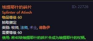 收集40个埃提耶什的碎片组合成埃提耶什的杖柄,该碎片NAXX里除了冰龙和克尔苏加德其余所有的BOSS都有概率掉落。