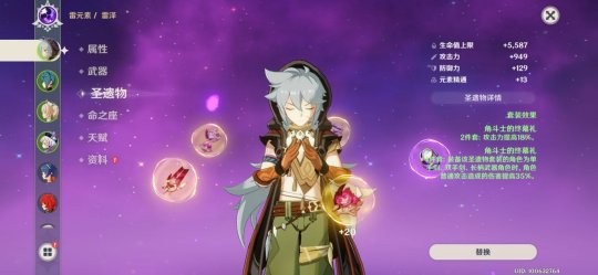 高命座雷泽可以暂时选择二加二套装,也就是最好的两件套凑两个攻击力加成,加上优秀单件,全给最好的圣遗物,配合六命座可以让雷泽打出不错的雷伤。