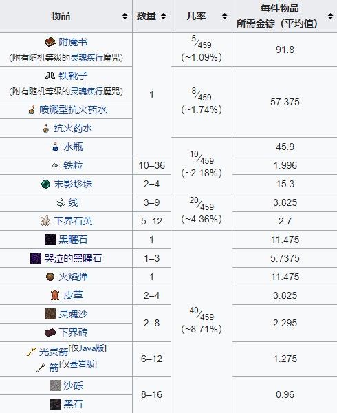 猪灵拿到金锭后,会按照一定概率向玩家扔出以下物品: