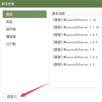 自定义自己的核心或者(安装自己开服所用的jar核心并在已下载界面安装),然后确定。如果选错了也没事,可以点击最小化左边的倒三角,里面有个“设置”可以重新更换核心。